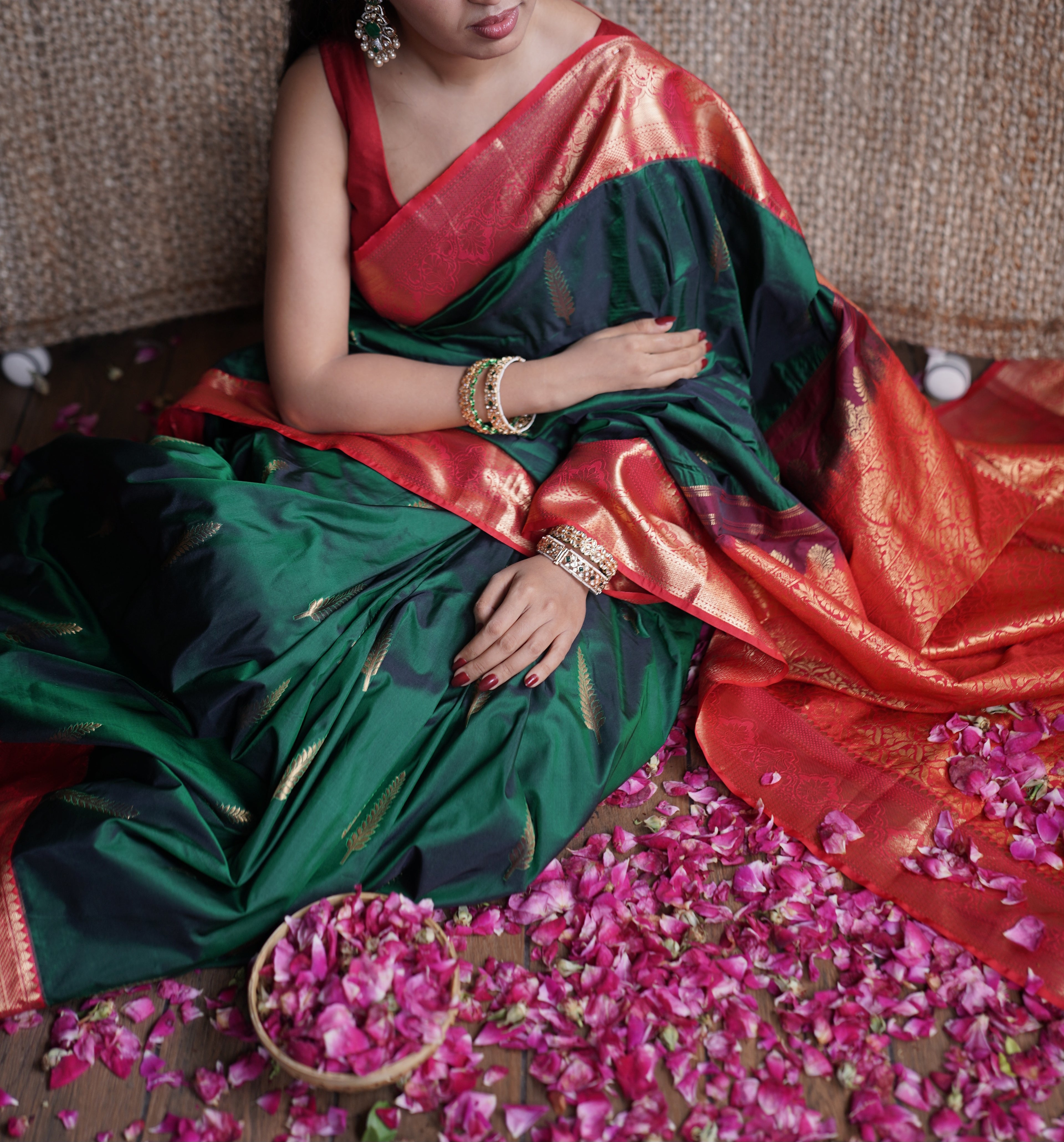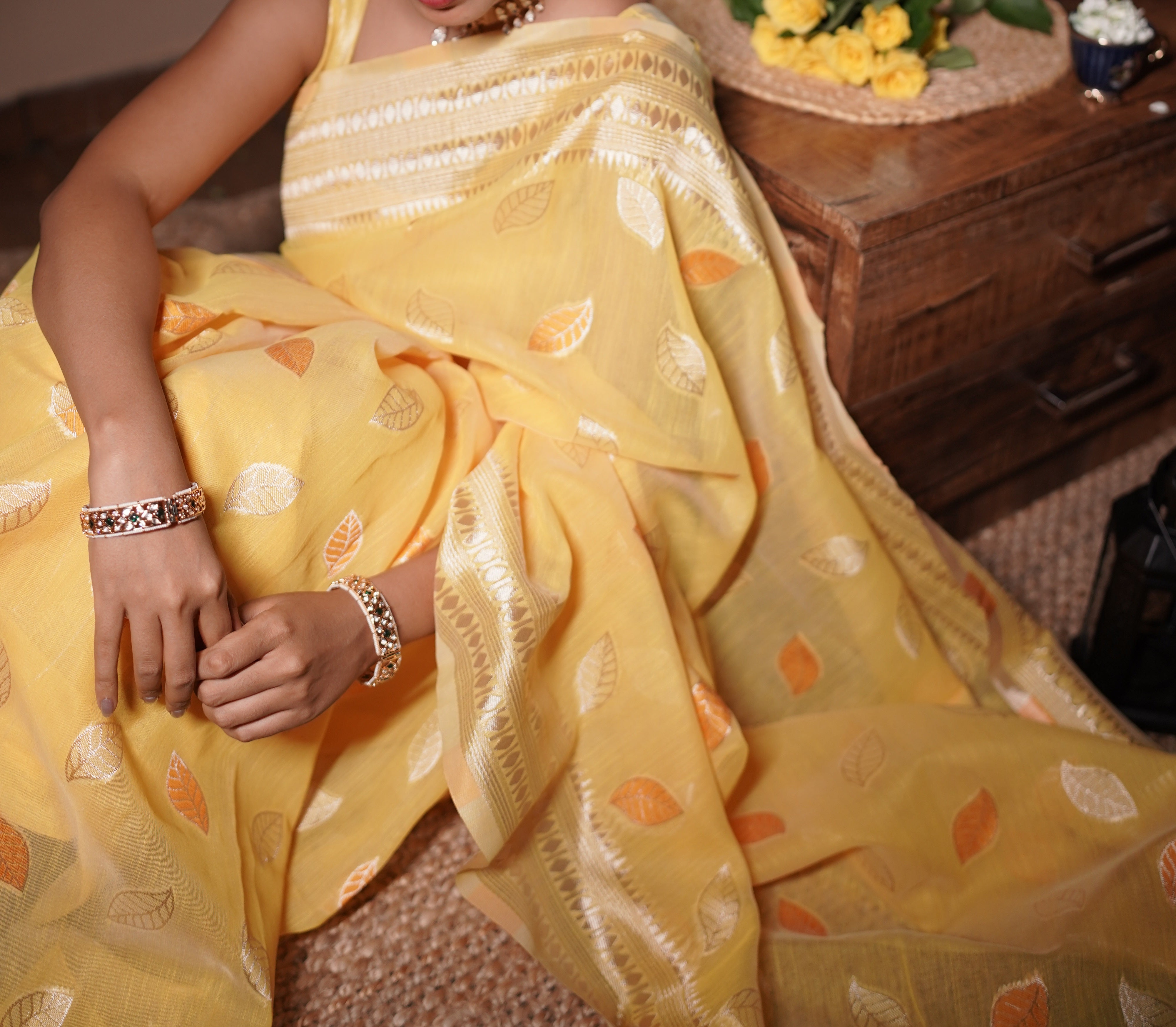 Our silk sarees are crafted from the finest materials, ensuring every piece radiates luxurious charm.